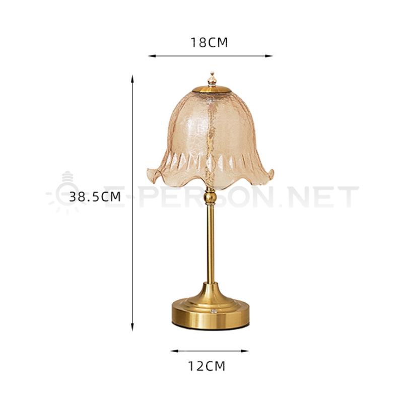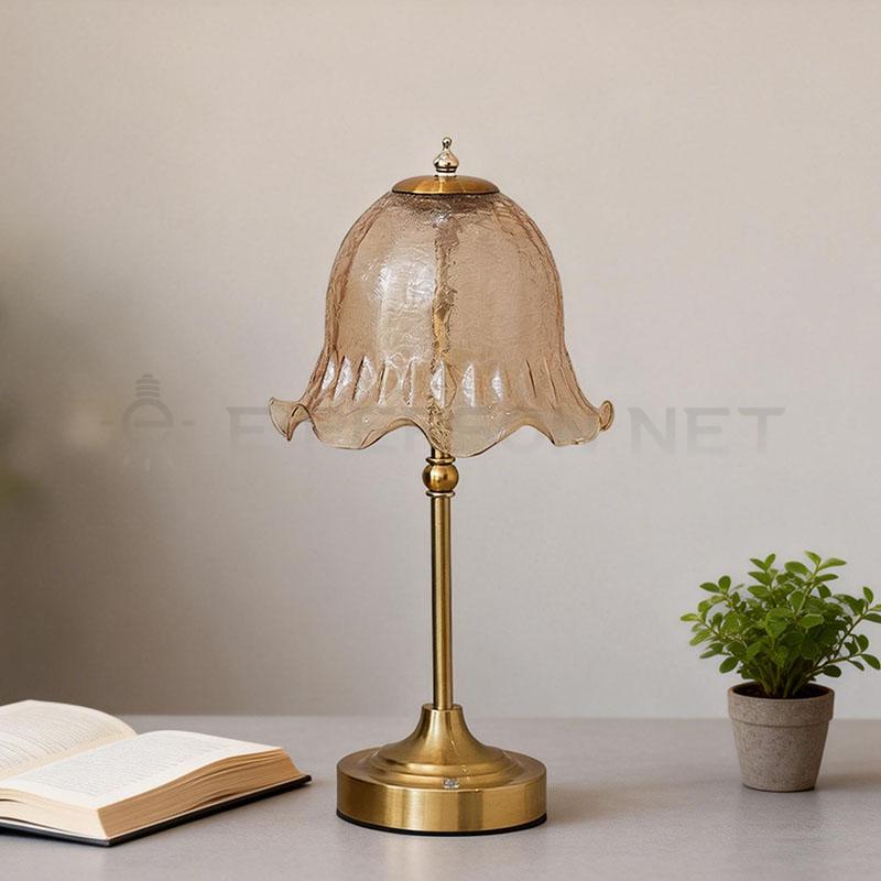 This vintage table lamp features a classic brass finish metal base paired with a delicate flower-shaped glass shade, creating a warm and elegant lighting effect.The softly textured glass diffuses light evenly, providing comfortable ambient illumination for bedrooms, living rooms, and bedside areas.