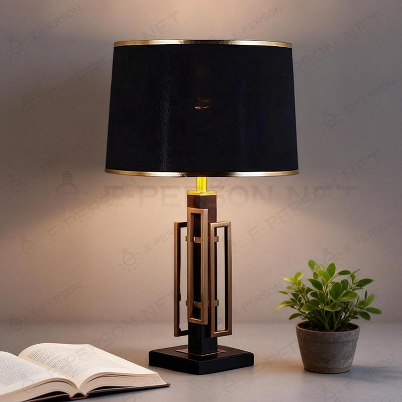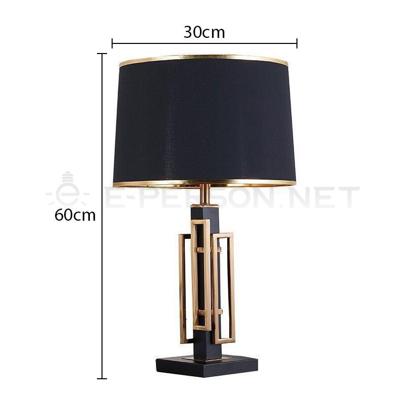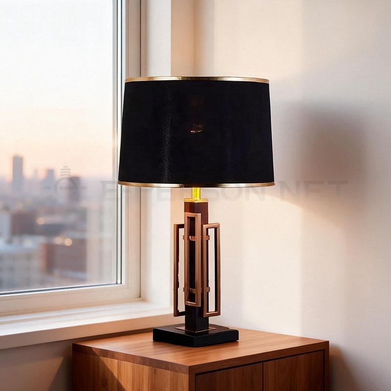 This modern luxury table lamp features a black fabric lampshade combined with a geometric metal frame, creating a bold and elegant visual statement.The structured metal body with refined details adds a contemporary architectural feel, while the fabric shade provides soft, comfortable lighting.
