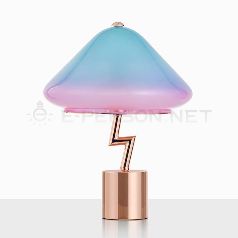 Make a bold style statement with this Colorful Gradient Mushroom Table Lamp, featuring a captivating blend of blue and pink hues and a unique zigzag metal stand. Designed to stand out, this lamp brings playful creativity and modern flair to your home or workspace.