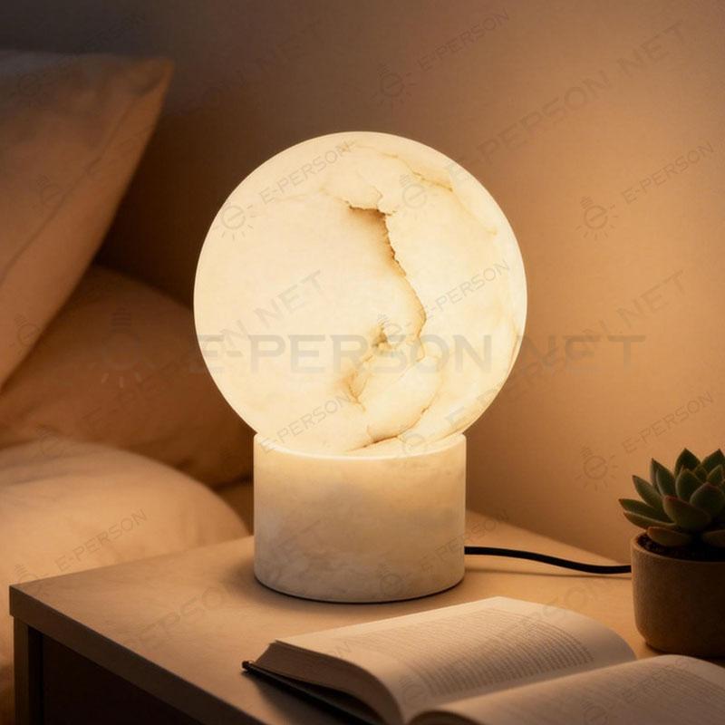 Illuminate your space with timeless elegance using this globe table lamp. Featuring a hand-polished natural stone ball atop a matching cylindrical base, this lamp emits a warm and soft ambient glow through the subtle textures.Perfect for bedrooms, living rooms, or hotel interiors, it brings both light and luxury to any setting