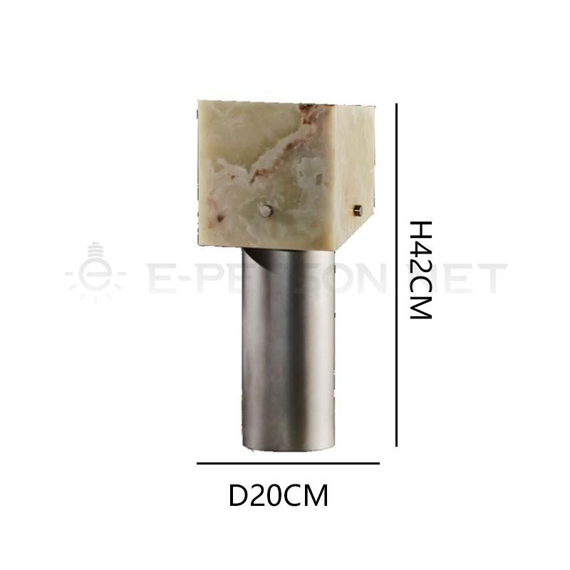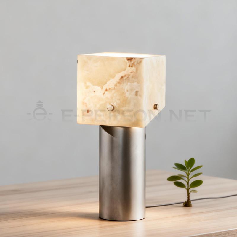 This minimalist table lamp is crafted with a natural stone cube shade paired with a sleek metal base, offering a balanced and contemporary design.