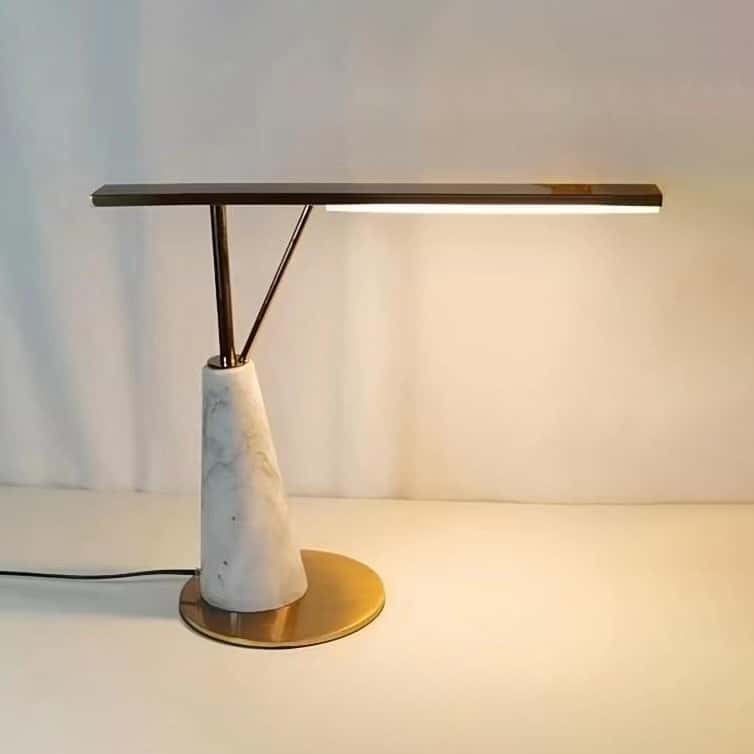 Sleek LED Desk Lamp, Marble Base with Chrome Accents and Adjustable Arm for Modern Home & Office Lighting