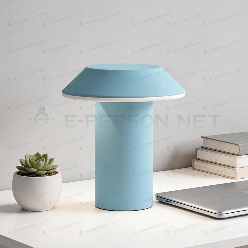 This modern minimalist table lamp features a clean geometric structure with a cylindrical base and flat top design.