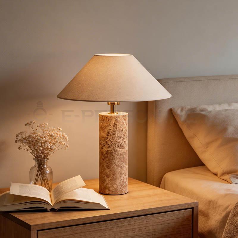 This elegant table lamp features a natural marble base paired with a fabric lampshade, showcasing a perfect balance of luxury and simplicity. The unique stone texture adds a premium feel to any space.