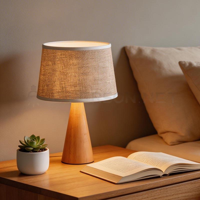 This Nordic-style table lamp combines a solid wood base with a linen fabric lampshade, offering a warm and natural aesthetic. The soft light passing through the fabric creates a cozy and comfortable atmosphere.