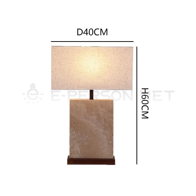 Travertine Table Lamp Square Stone Base Modern Bedside Decorative Lighting