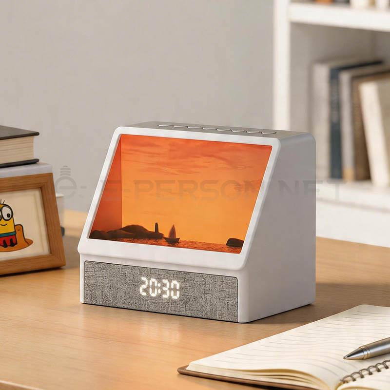 This smart desk lamp combines ambient lighting with a digital display, showing time and other information. The soft lighting creates a relaxing atmosphere, while the functional design makes it ideal for bedrooms, offices, and modern living spaces.