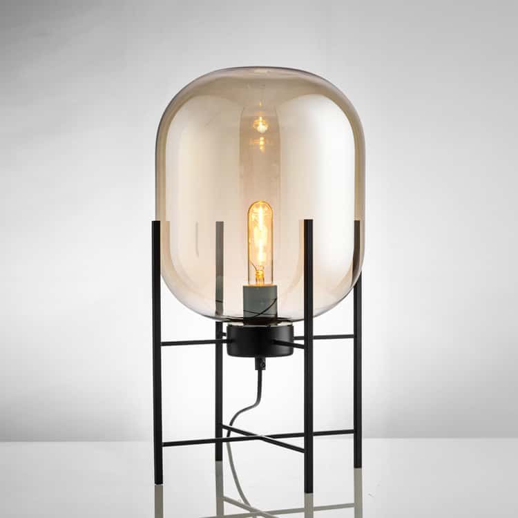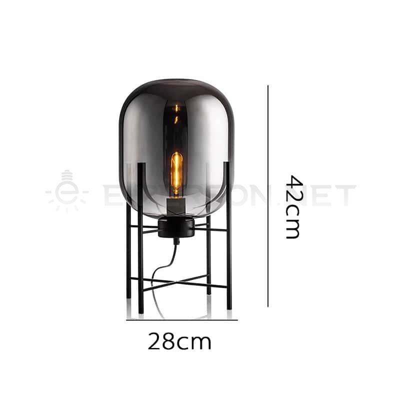 With its distinctive capsule-shaped smoked glass shade and matte black metal base, this table lamp strikes a bold silhouette that blends industrial charm with contemporary elegance. The transparent grey tint reveals the beauty of an exposed filament bulb, casting a warm, ambient glow perfect for moody interiors or creative workspaces.