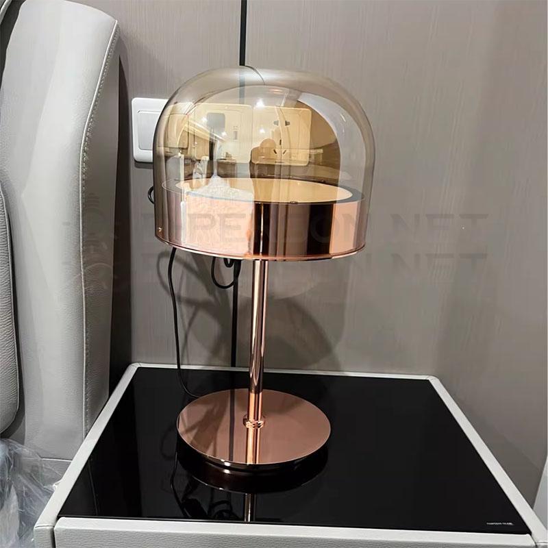 Elevate your interior with our Modern Luxury Glass Table Lamp,a perfect blend of contemporary elegance and timeless design. Featuring a high-transparency tinted glass lampshade and a polished rose gold metal base, this mushroom-shaped lamp adds a sophisticated charm to any setting. Ideal for bedrooms, hotel suites, living rooms, or designer spaces, it emits a soft ambient glow that enhances comfort and style. The LED light source ensures energy efficiency and long-lasting performance. Available in two sizes, it’s perfect for pairing or standalone use.