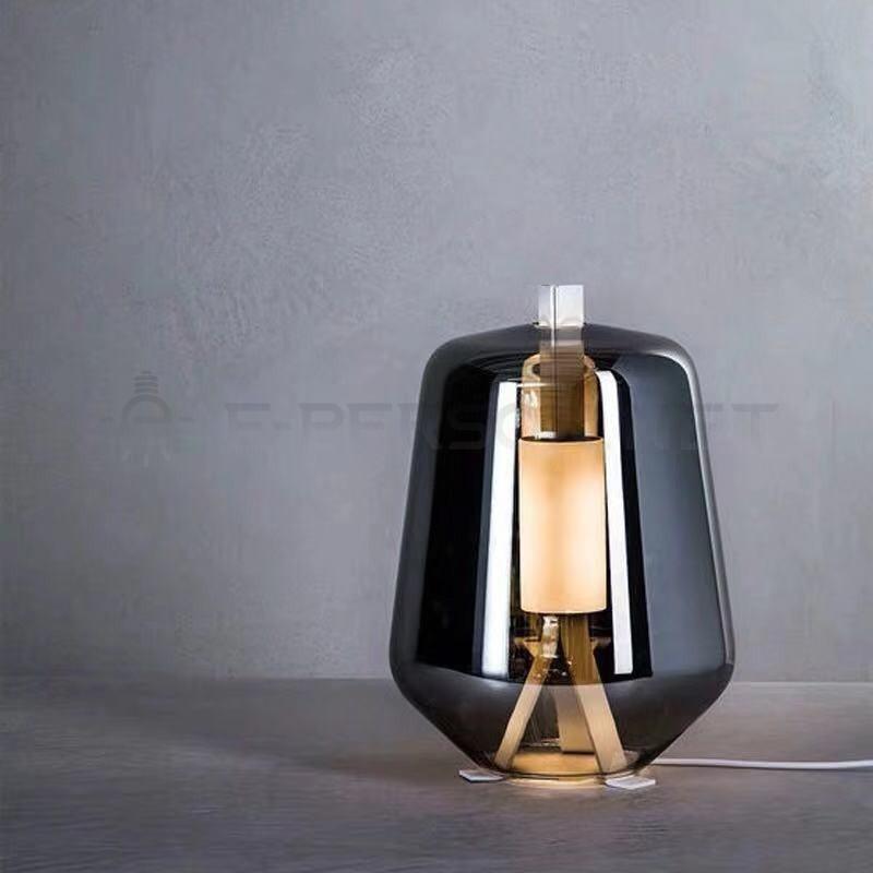 Modern Smoked Glass Table Lamp | Suspended Light Core Design for Ambient Lighting