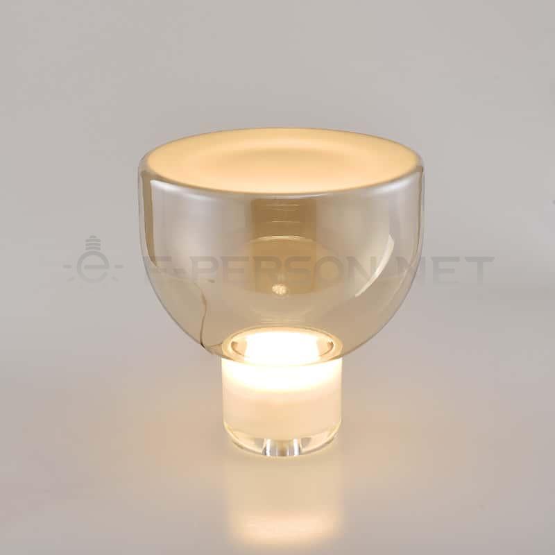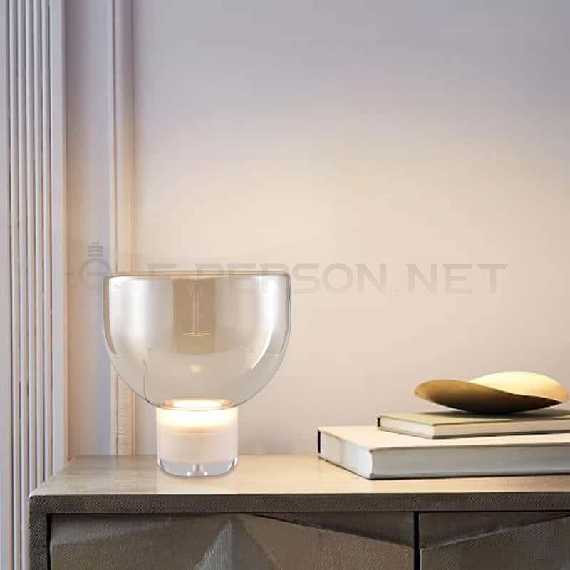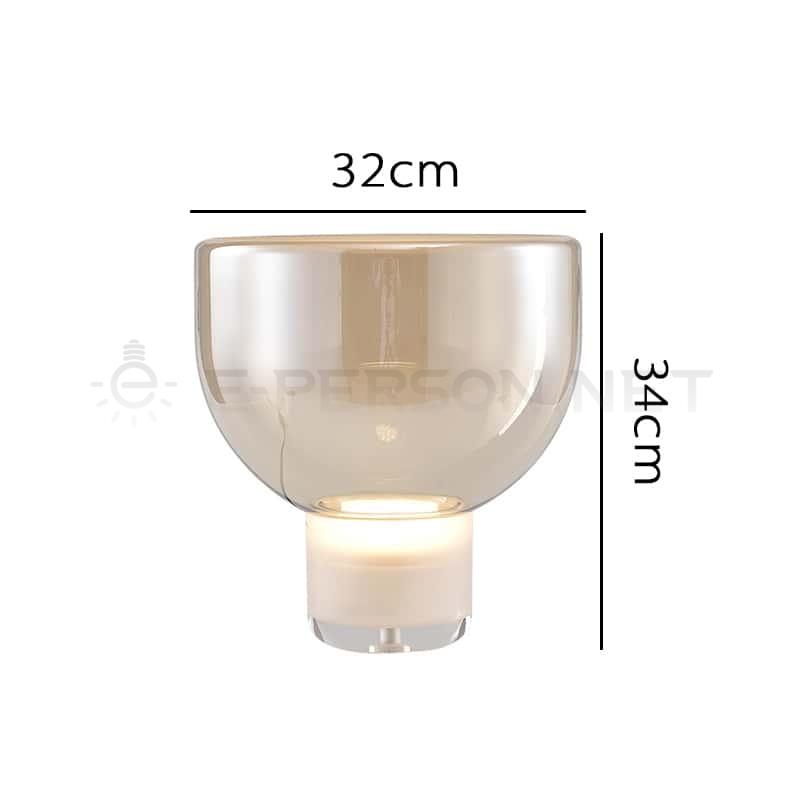 This minimalist table lamp showcases timeless elegance through its clean silhouette and warm amber glow. The large blown-glass dome softens the light beautifully, creating an inviting atmosphere for bedrooms, lounges, and hotel interiors. A compact frosted base anchors the design with understated sophistication.