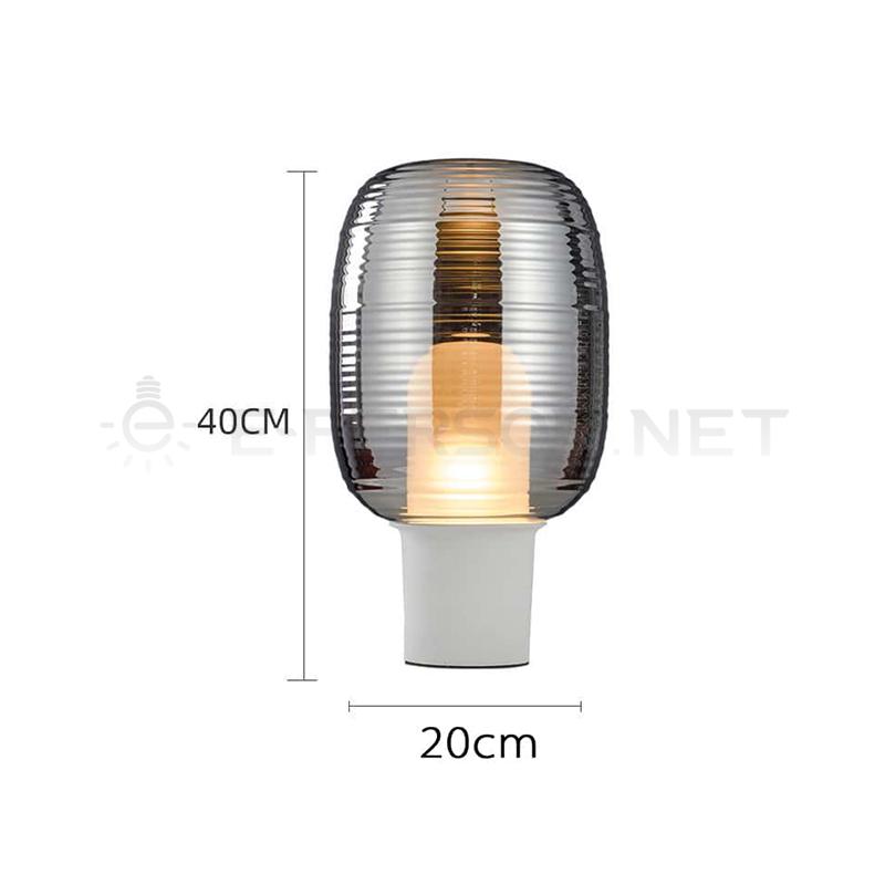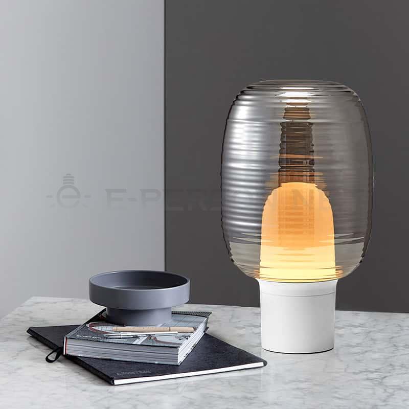 Modern Glass Table Lamp with Striped Smoked Shade and White Base | Nordic LED Desk Light for Bedroom and Living Room