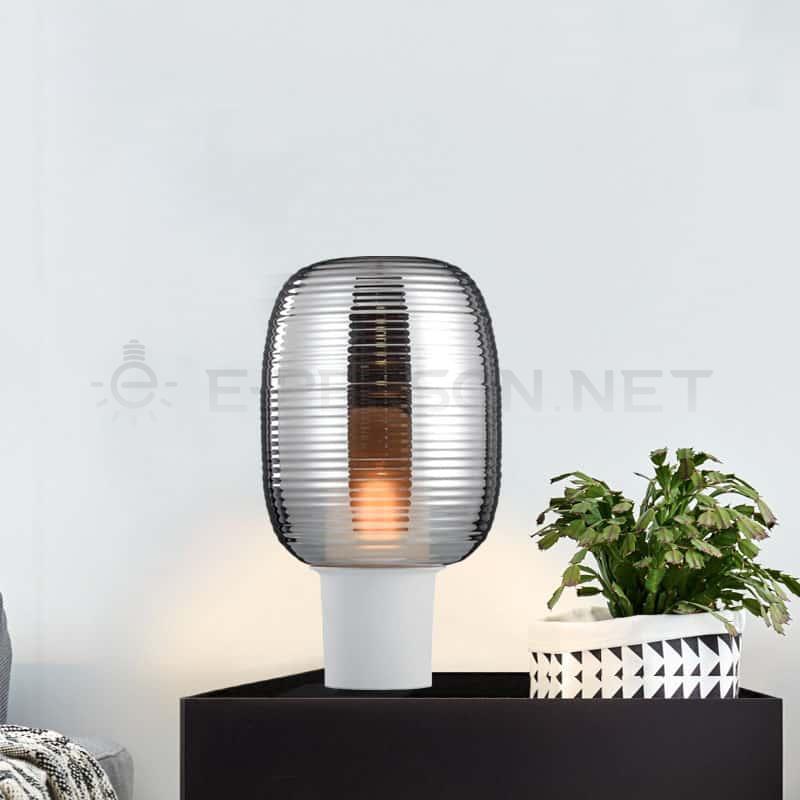 Bring warmth and sophistication into your space with this modern striped glass table lamp. Featuring a uniquely textured smoked glass shade and a contrasting white cylindrical base, this lamp delivers soft ambient lighting perfect for relaxing evenings or stylish home decor.
