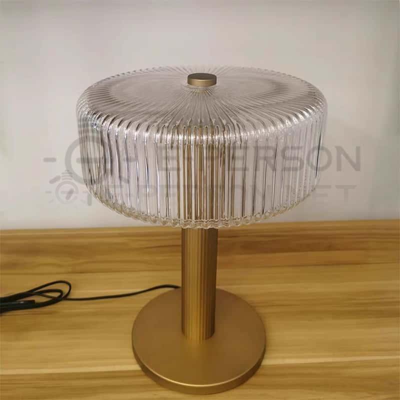 This table lamp features a sleek iron frame paired with a frosted or ribbed glass lampshade, creating a perfect blend of industrial charm and modern elegance. The sturdy metal structure ensures durability, while the glass shade diffuses light softly for a warm and ambient glow. Ideal for bedrooms, living rooms, offices, and hotels, this lamp adds both function and sophistication to any interior. Its minimalist form makes it suitable for a wide range of modern and contemporary settings.