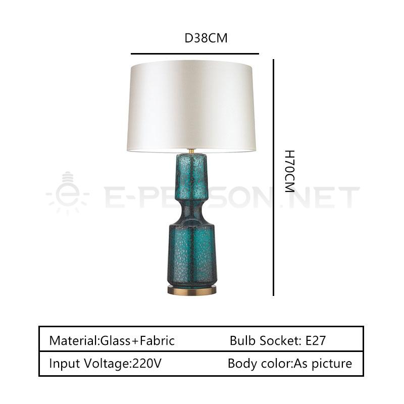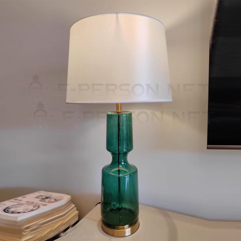 Elegant Glass Table Lamp | Contemporary Blue Glass Base with White Fabric Shade for Living Room, Bedroom, and Office