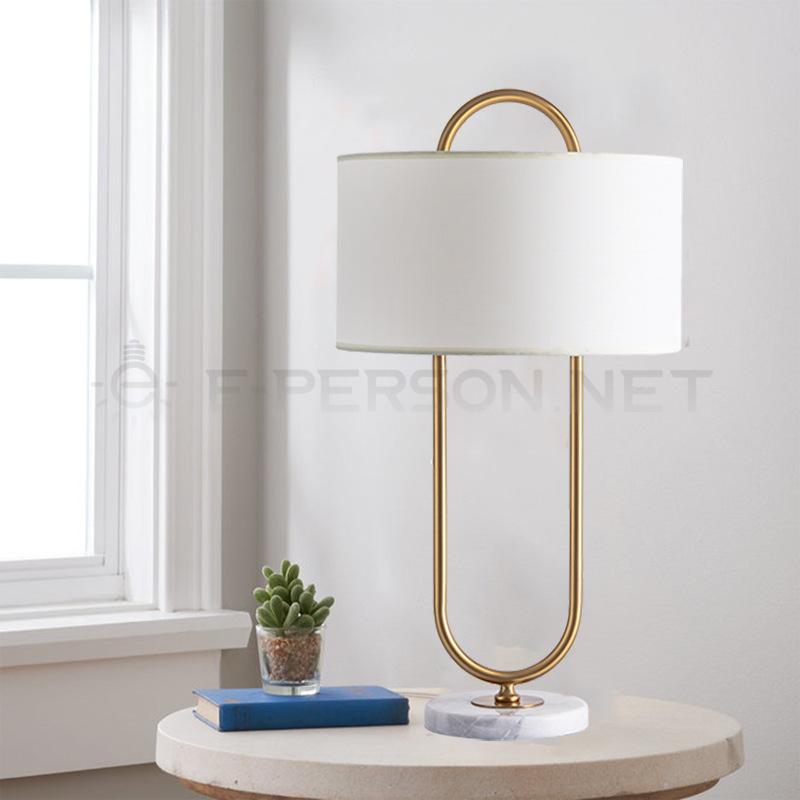 Modern Minimalist U-Shaped Table Lamp with Fabric Drum Shade and Marble Base | E27 Desk Light for Bedroom, Living Room, Hotel