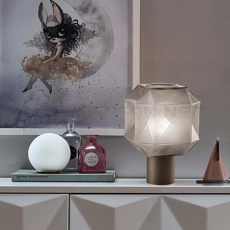 Bring a touch of modern sculpture into your home with this frosted geometric glass table lamp. Designed with a polygonal faceted shade and minimal cylindrical base, this lamp is more than just lighting.it's an artistic statement. The frosted glass surface emits a soft, diffused glow that enhances ambiance while reducing glare, making it perfect for cozy spaces or stylish hospitality environments.