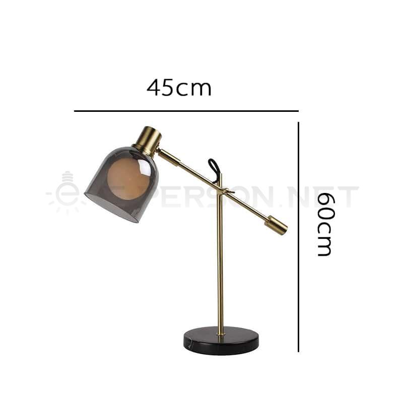 Add a touch of refined industrial charm to your workspace or bedside with this adjustable brass table lamp. Featuring a smoked amber glass lampshade and sleek metal arm in vintage brass finish, the lamp blends retro aesthetics with modern functionality. Its marble base ensures stability and elevates the overall elegance of the design.