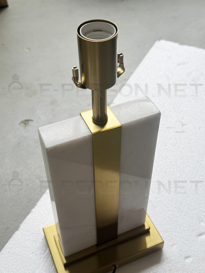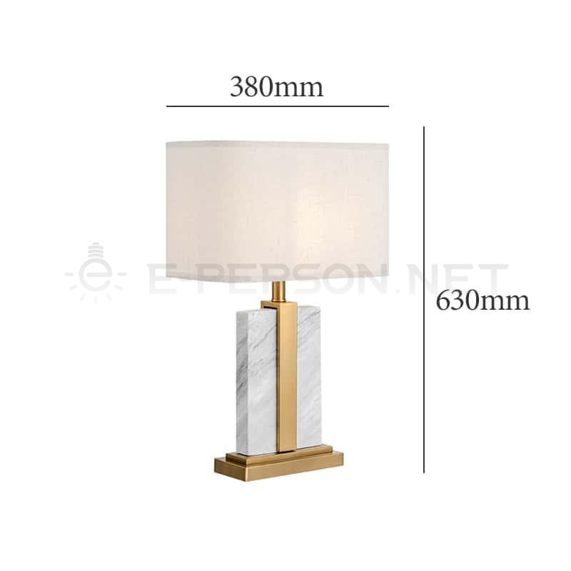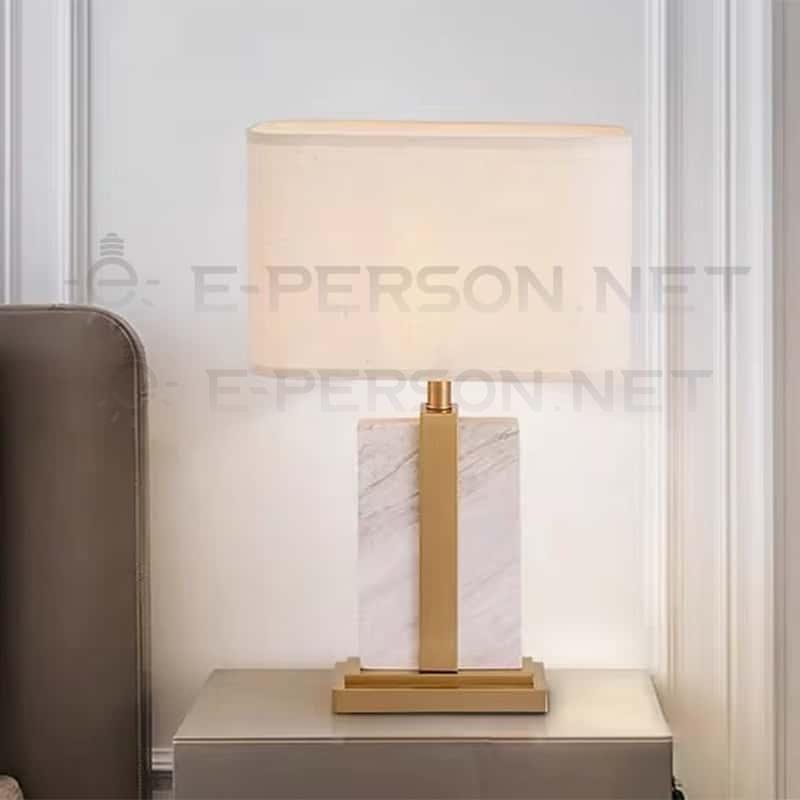 Modern Marble Table Lamp with Brass Accent & Fabric Shade Minimalist Bedside Lighting