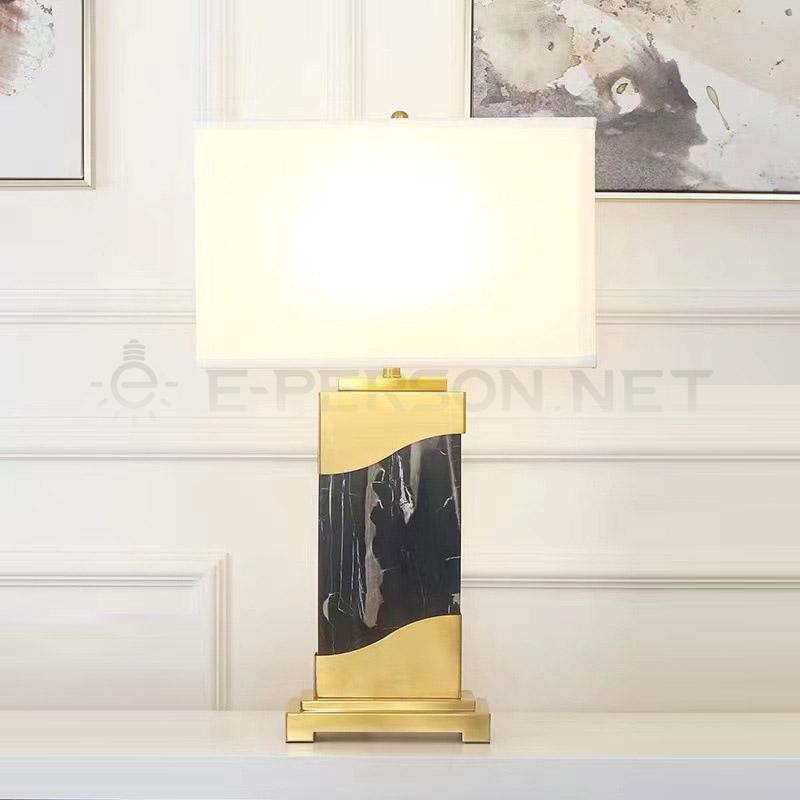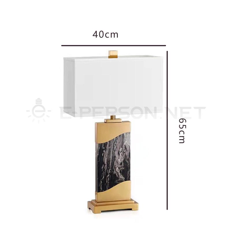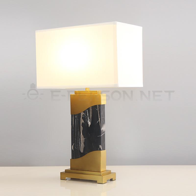 Luxury Rectangular Table Lamp with Black Marble and Gold Metal Base | Modern Fabric Shade Bedside Light