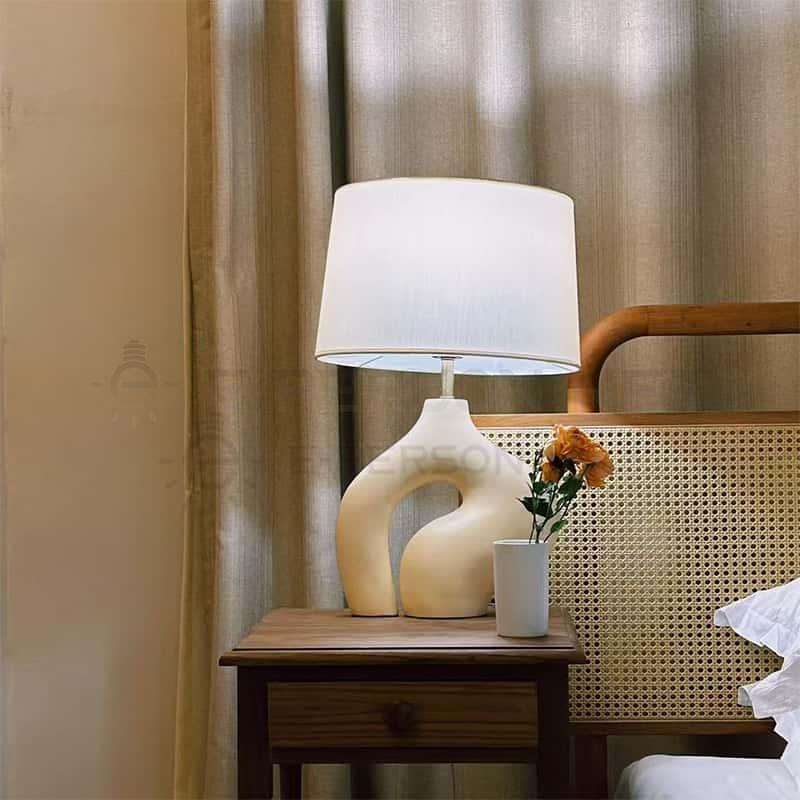 Modern Ceramic Table Lamp | Sculptural Art Bedside Light with Fabric Shade for Living Room Bedroom