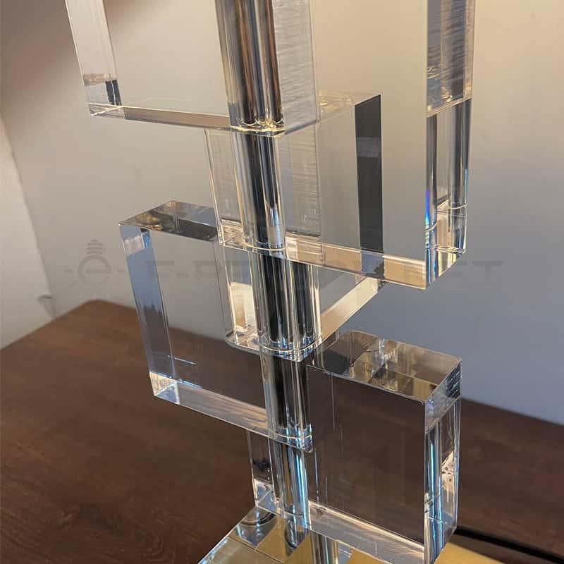 Add a touch of modern elegance to your home or office with this Geometric Acrylic and Gold Desk Lamp. Featuring a captivating arrangement of clear acrylic blocks and a sleek gold base, this lamp creates a visually striking and luxurious design. The fabric lampshade diffuses light to provide a soft, inviting glow, making it an excellent choice for desks, bedside tables, or living room spaces.
