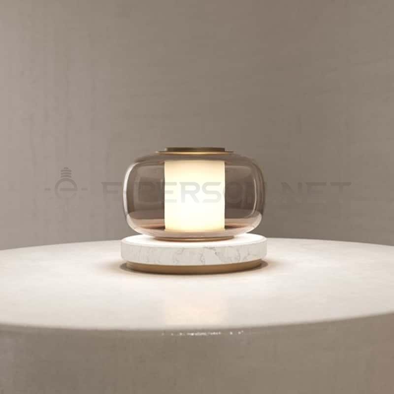 A perfect harmony of natural stone and translucent smoky glass, this luxury modern table lamp brings soft illumination and sculptural presence to your space. The frosted inner diffuser emits a warm, comforting glow, ideal for bedrooms, lounges, or boutique hotels.