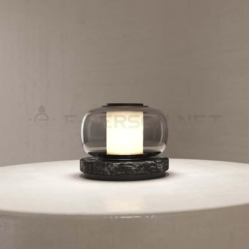 Modern Smoky Glass Marble Table Lamp | Luxury LED Ambient Light for Living Room & Bedroom