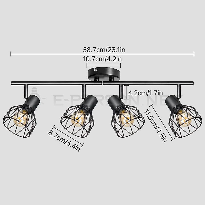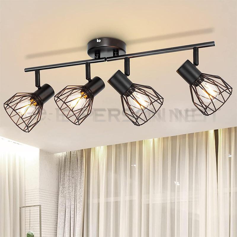 This modern 4-light ceiling spotlight combines industrial aesthetics with functional design. Crafted from durable metal in a matte black finish, it features four adjustable lamp heads with faceted glass shades that deliver a stylish retro-inspired look. Each light can be independently rotated, allowing you to direct illumination exactly where you need it — ideal for accenting artworks, kitchen areas, or living room spaces. Compatible with LED bulbs, it provides bright, energy-efficient lighting with a warm, inviting glow. Perfect for modern homes, cafés, or galleries seeking a blend of practicality and contemporary elegance.