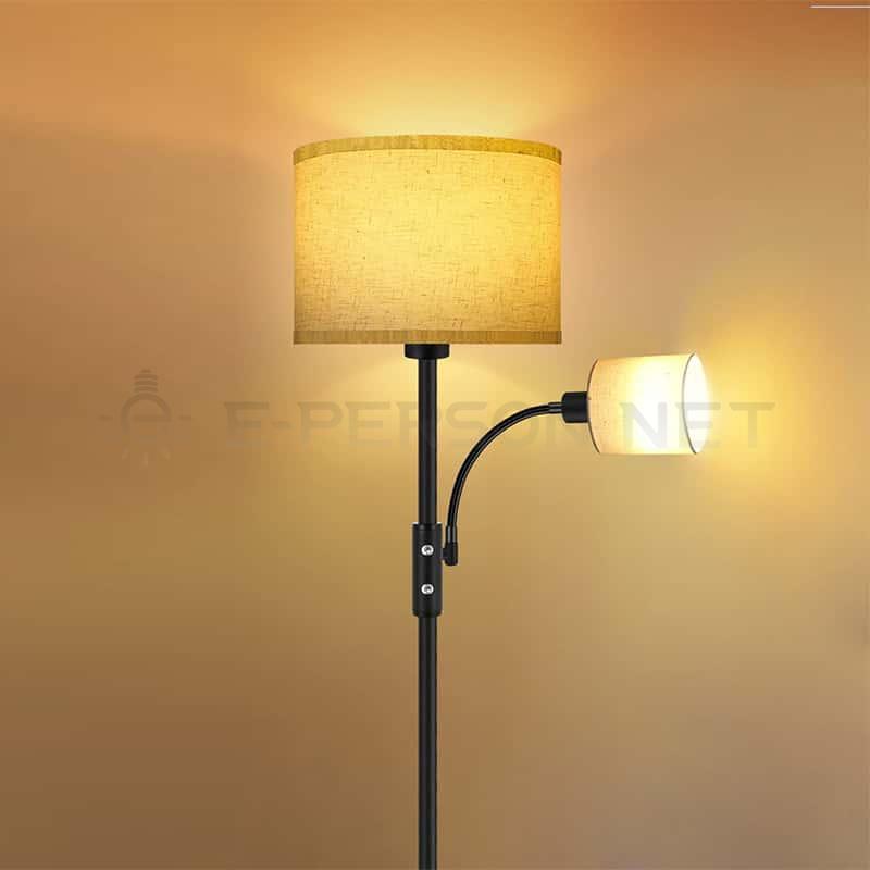 This modern dual-head floor lamp combines soft ambient lighting with a practical reading light, making it an ideal choice for living rooms, bedrooms, offices and reading corners. The main lamp features a warm linen fabric shade that creates a cozy atmosphere, while the side lamp is equipped with an adjustable curved arm for focused task lighting. Crafted with a stable metal base and durable lamp body, this 2-in-1 standing lamp offers both functionality and style. Compatible with standard E27 bulbs, easy to assemble, and designed to fit various interior styles such as modern, minimalist, Scandinavian and contemporary homes.