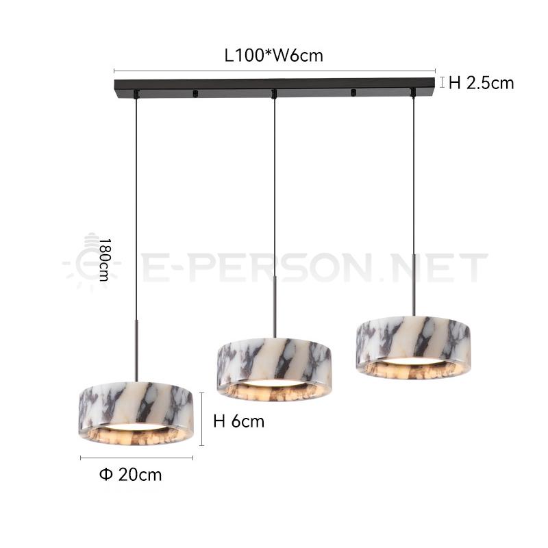 This modern 3-head pendant light features natural marble lampshades paired with a sleek linear metal suspension bar, creating a luxurious and contemporary look ideal for premium interior spaces. Each lampshade is crafted from real marble stone, delivering unique patterns and high-end texture while offering soft, warm illumination. The balanced 3-light design provides excellent coverage for kitchen islands, dining tables, bars and modern living areas. With stable metal hardware, adjustable suspension height, and LED bulb compatibility, this pendant lamp combines durability, aesthetics and functionality—perfect for customers seeking premium decorative lighting for residential or commercial use.