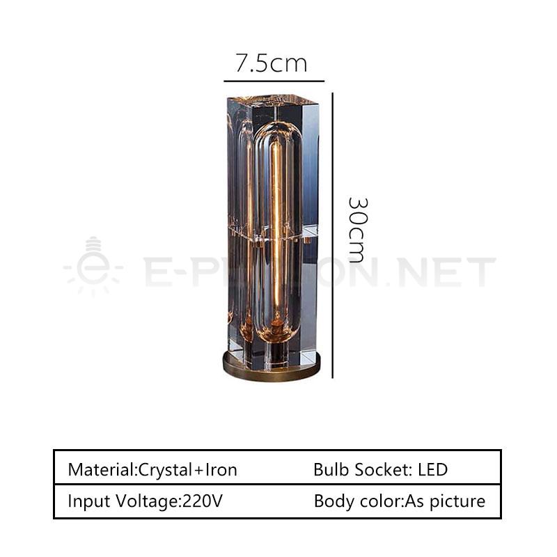 This modern luxury Crystal table lamp features a sculptural transparent glass body with a vertically integrated LED light tube, creating a clean, architectural silhouette.