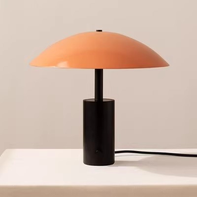 Multiple Color Dome Table Lamp Minimalist Mushroom-Style Light with Black Cylinder Base for Bedroom, Living Room & Office Decor