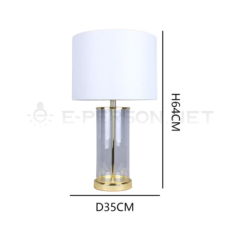 This modern glass table lamp features a sleek transparent cylindrical glass body combined with a refined gold metal center column, creating a perfect balance between elegance and contemporary design.