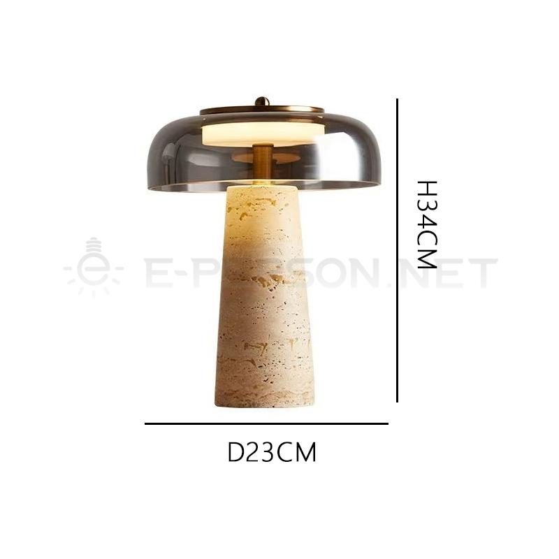 This designer table lamp features a conical natural stone base combined with a transparent glass shade and refined metal top, creating a sophisticated balance between natural texture and modern elegance. The glass shade allows light to diffuse evenly, while the stone base adds visual weight and a premium architectural feel.