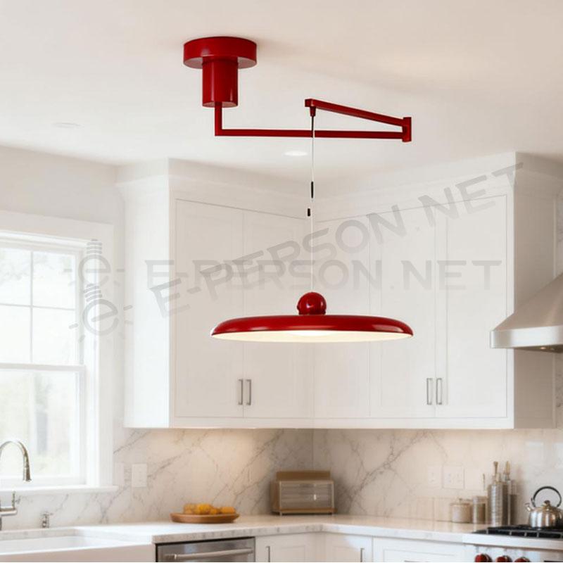 This modern adjustable pendant light features a swing arm and extendable structure, allowing flexible positioning to suit different lighting needs.