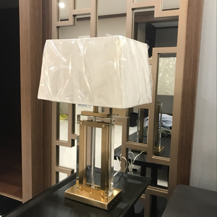 Modern American Creative Design Crystal Table Lamp Simple & Decorative Fabric Shade for Hotel Bedroom AC Power Supply