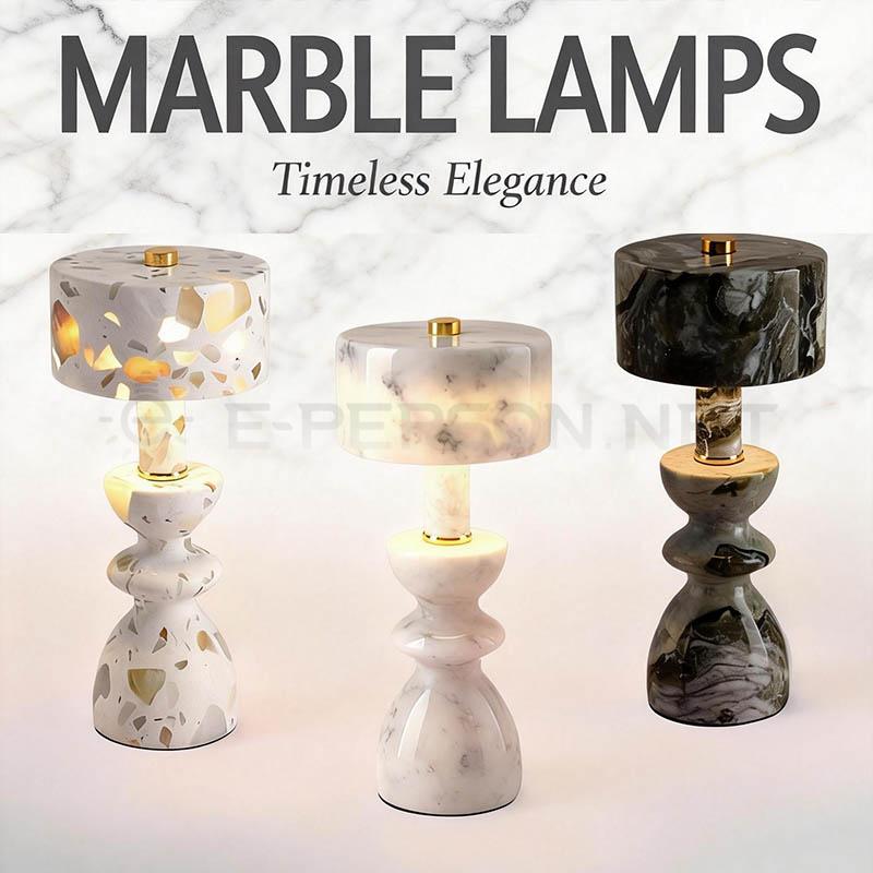 This decorative table lamp features a natural marble stone base with a sculpted shape, creating a warm and relaxing lighting effect.The stone body adds texture and visual depth, while the soft light provides comfortable ambient illumination.