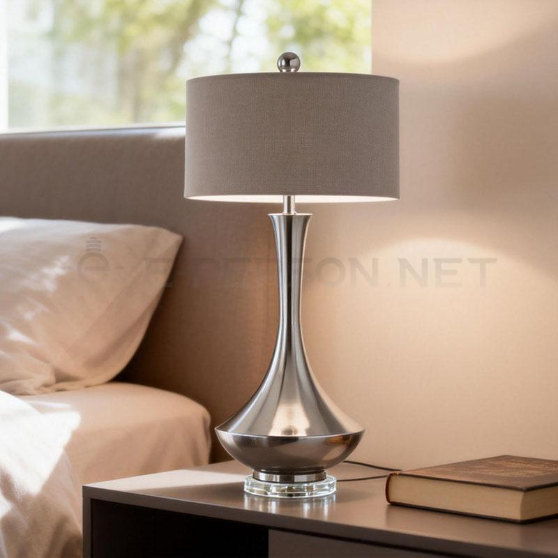 This table lamp is designed for indoor lighting applications, featuring a modern metal base combined with a fabric lampshade.The fabric shade softens the light output, providing warm and comfortable illumination suitable for daily use.