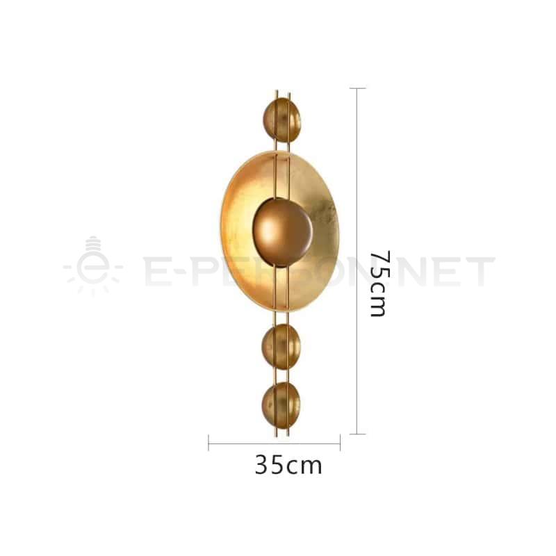 Featuring a large gold central disc flanked by three luminous satellite-like spheres, this wall lamp creates a sculptural and ambient glow that evokes the alignment of planets.