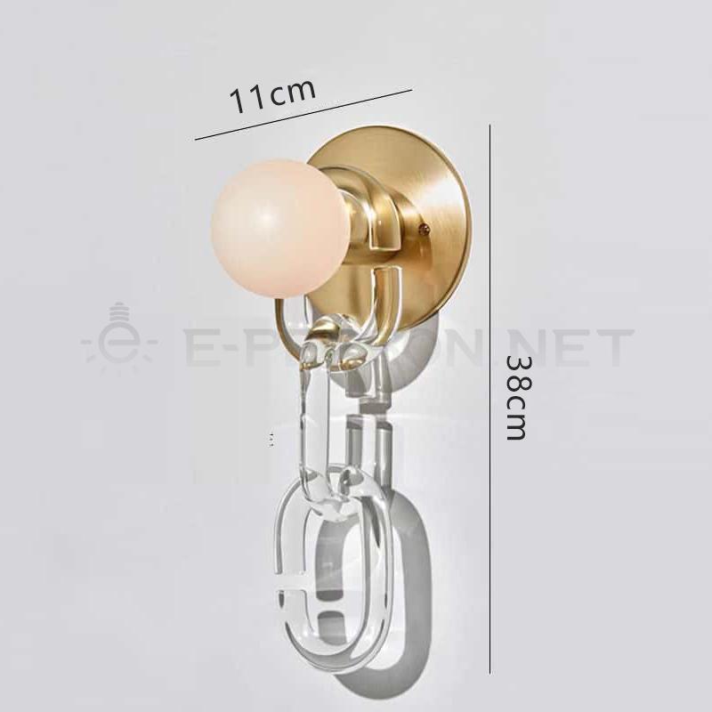 This luxury LED wall lamp blends gold metal accents with a unique acrylic chain design for a stunning modern statement. The frosted globe shade diffuses warm light evenly, creating a cozy and sophisticated atmosphere. Available in multiple color options, it fits a wide range of interior styles—from luxury hotel rooms and stylish restaurants to modern bedrooms and living spaces. Crafted with high-quality materials, this sconce combines aesthetic appeal with durability, making it perfect for both residential and commercial lighting projects.