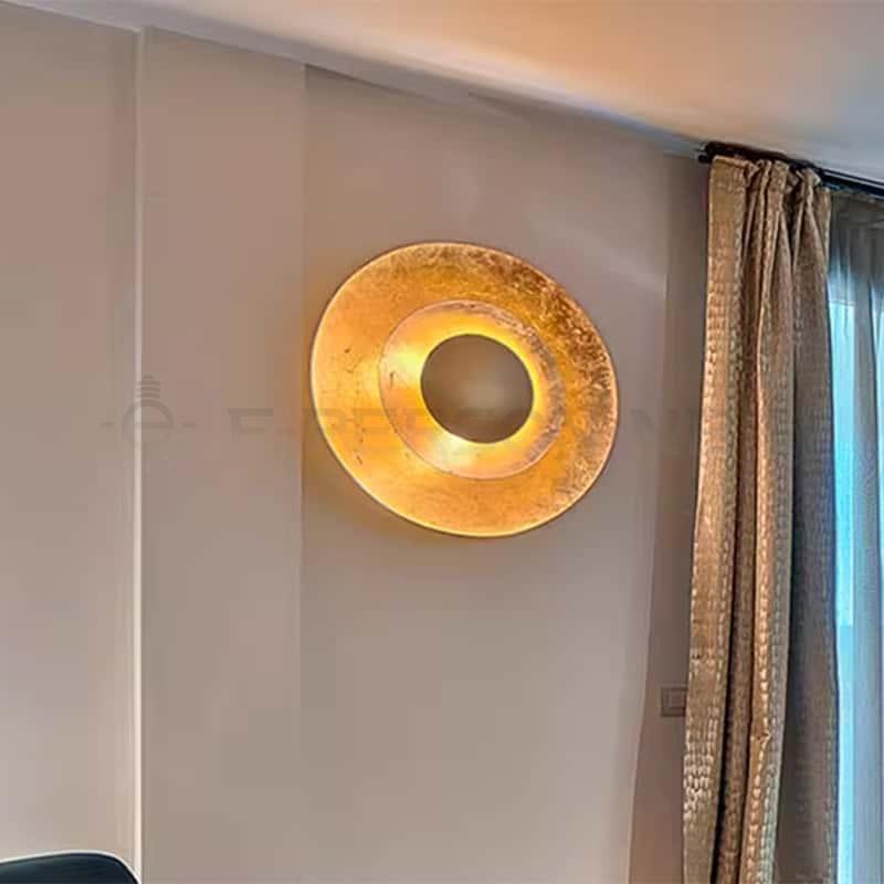 This luxury gold LED wall lamp features a refined round layered disc design with a rich metallic finish, making it a statement piece for any interior. The warm LED illumination enhances the golden surface, creating an inviting and sophisticated atmosphere. Perfect for living rooms, bedrooms, hotels, restaurants, and art spaces, this decorative wall light blends functionality with art, serving as both a lighting fixture and a striking wall accent. Crafted from high-quality materials, it ensures durability, energy efficiency, and timeless elegance.