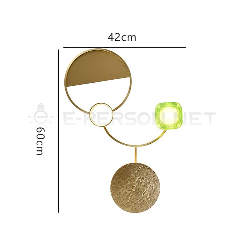 This luxury designer wall lamp blends modern geometric artistry with premium craftsmanship, creating a stunning centerpiece for any space. Featuring a sleek gold metal frame, a half-circle brushed metal plate, a textured gold disc, and a green honeycomb-pattern glass shade, it provides both ambient LED lighting and stylish decoration. The unique combination of circles, textures, and colors makes it perfect for enhancing living rooms, bedrooms, hotels, restaurants, and galleries. A true statement piece for buyers seeking elegant, high-end lighting solutions.