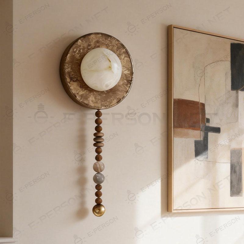 This vintage wooden wall lamp features a rustic candle-style design with a round wood base and decorative bead chain, bringing a warm farmhouse and retro atmosphere to your interior space. The candle-inspired light source creates soft ambient lighting while adding a charming decorative touch to the wall.Perfect for bedrooms, living rooms, hallways, corridors, and farmhouse-style interiors, this single head wall sconce blends easily with rustic, vintage, and country home decor. Its compact wall-mounted design makes it suitable for both small and large spaces.