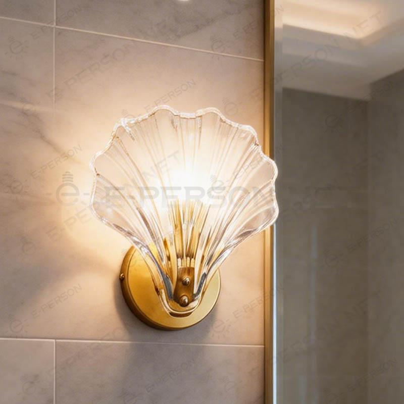 this wall lamp shell shaped glass lampshade, paired with an exquisite gold base, cleverly blends the softness of waves with the texture of metal. When the lights are turned on, the warm light spreads evenly through the glass, like putting the gentle sunset into the home, not glaring but bright enough. Whether it's adding atmosphere to the living room or lighting up bedtime in the bedroom, it can instantly make the space luxurious and cozy. Easy to install, with one light on, adding a natural and artistic breath to the home.
