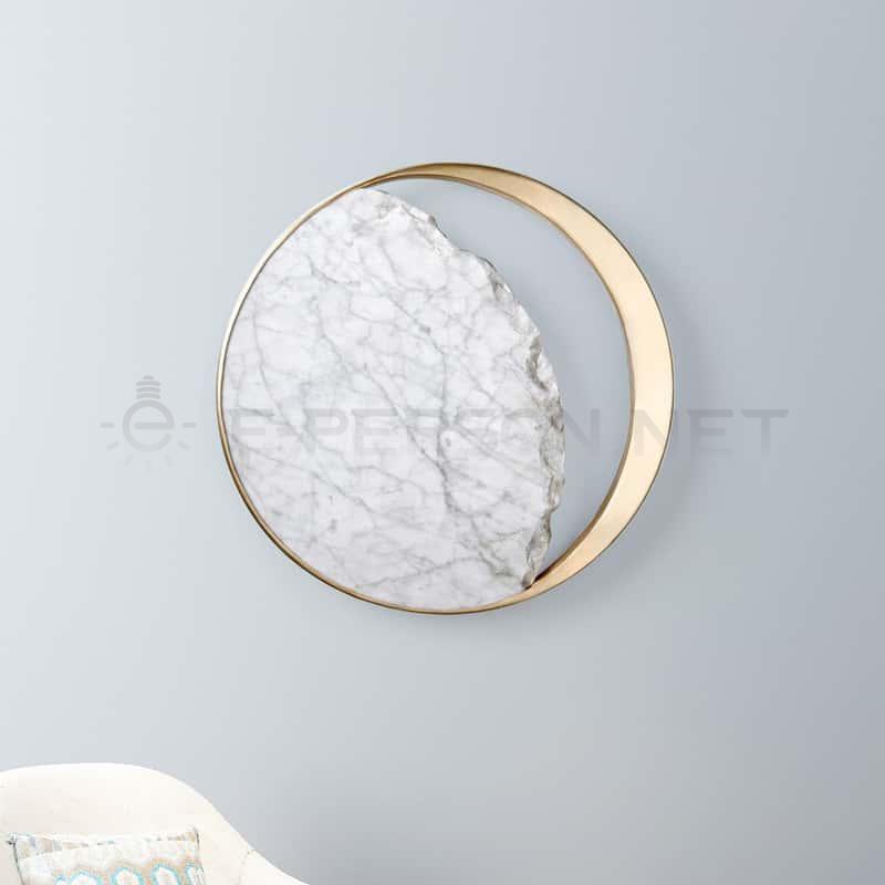 This luxury wall lamp features a refined blend of natural marble and an electroplated brass frame. The circular design, with its artistic half-textured marble surface and polished brass ring, creates a sophisticated “moonlight” effect, making it a striking decorative piece as well as a functional light. Perfect for living rooms, bedrooms, hallways, or upscale hotels, this wall sconce adds elegance and artistic charm to modern interiors. The use of marble and copper plating ensures durability while delivering a timeless luxury style.