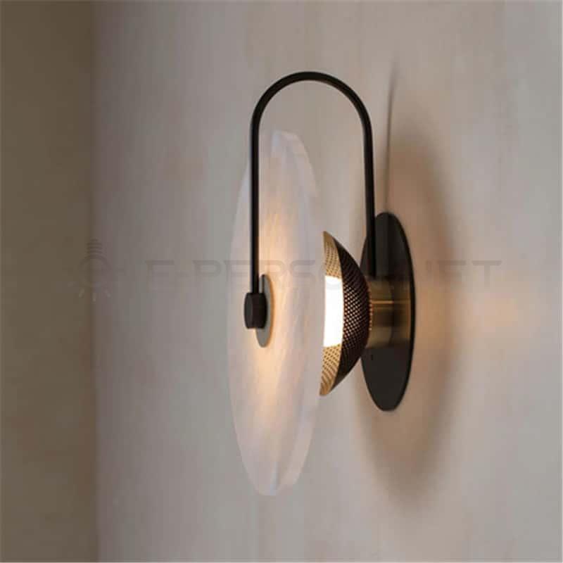This luxury wall lamp features a round alabaster shade paired with a sleek black iron arm, combining natural elegance with modern design. The alabaster softly diffuses light, creating a warm and calming glow, while the iron frame ensures durability and a stylish contrast. Perfect for bedrooms, living rooms, hallways, or upscale hotel interiors, this wall sconce serves as both a functional light and a decorative art piece. Its timeless mix of iron craftsmanship and natural stone makes it ideal for luxury residential and commercial projects.