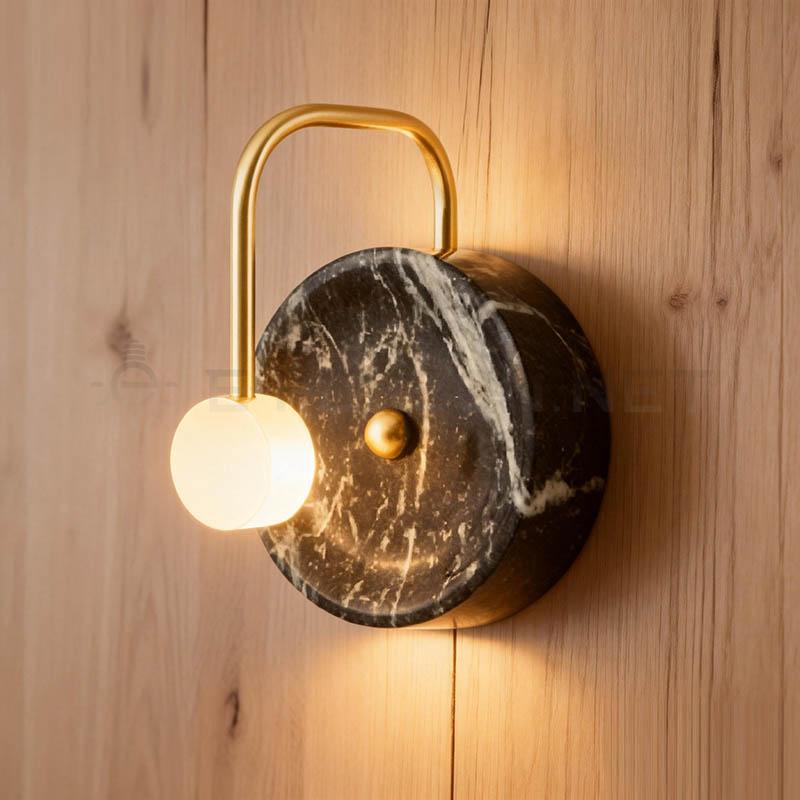 This luxury wall lamp is crafted from natural marble and iron, designed in a modern circular shape with brass-plated accents. The marble shade features unique natural stone veins, making each piece distinctive and elegant. The iron structure ensures durability while enhancing the contemporary aesthetic. Perfect for bedrooms, living rooms, corridors, or upscale hotels, this wall sconce delivers both decorative appeal and functional lighting. Its timeless mix of marble and iron makes it an ideal choice for luxury residential and commercial interiors.