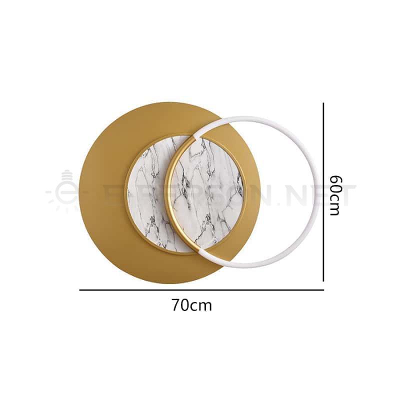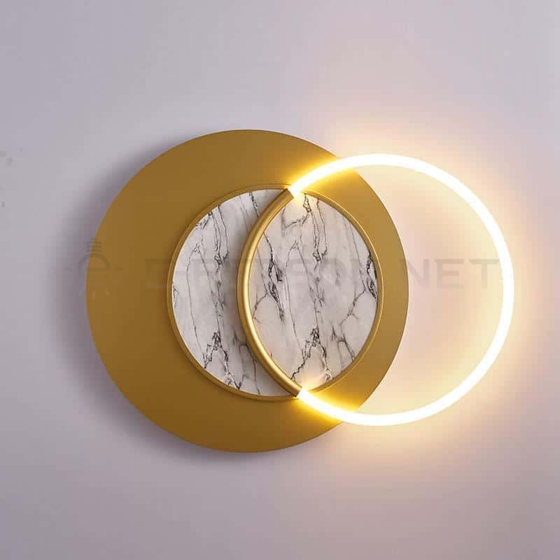 This luxury wall lamp combines natural marble with iron in a round artistic design inspired by moon phases. The marble shade highlights unique stone patterns, while the ring creates a glowing halo effect, making it a striking decorative piece. Perfect for living rooms, bedrooms, corridors, or upscale hotels, this wall sconce blends natural elegance with modern artistry. Durable and timeless, it is both a functional light and a statement décor for luxury interiors.