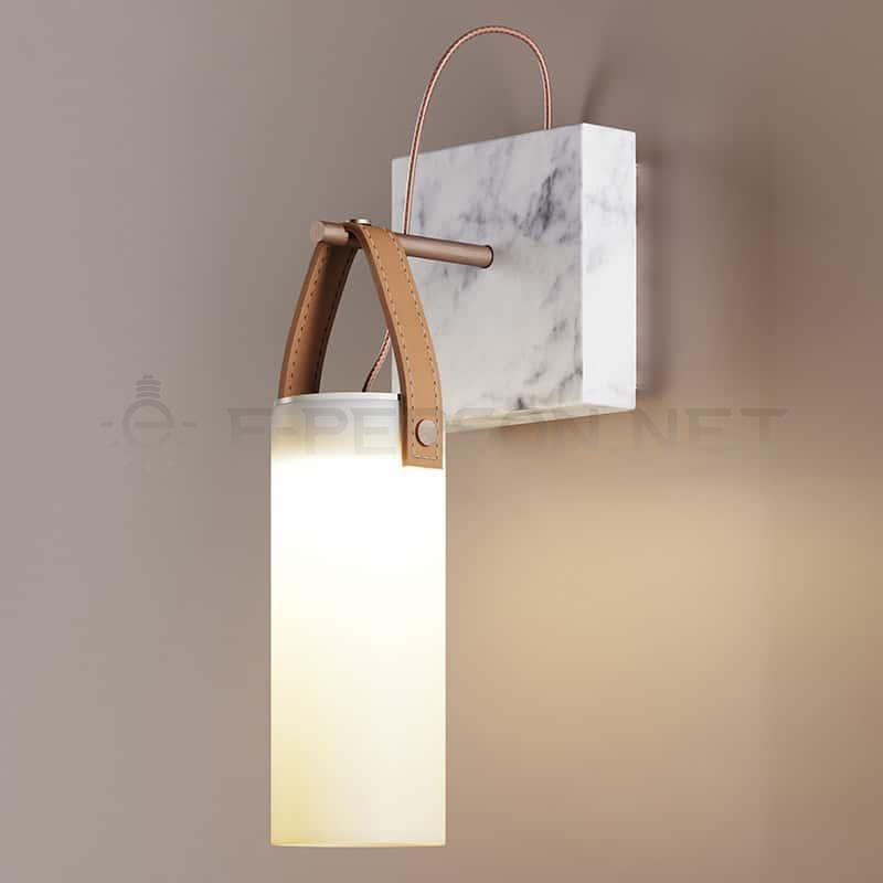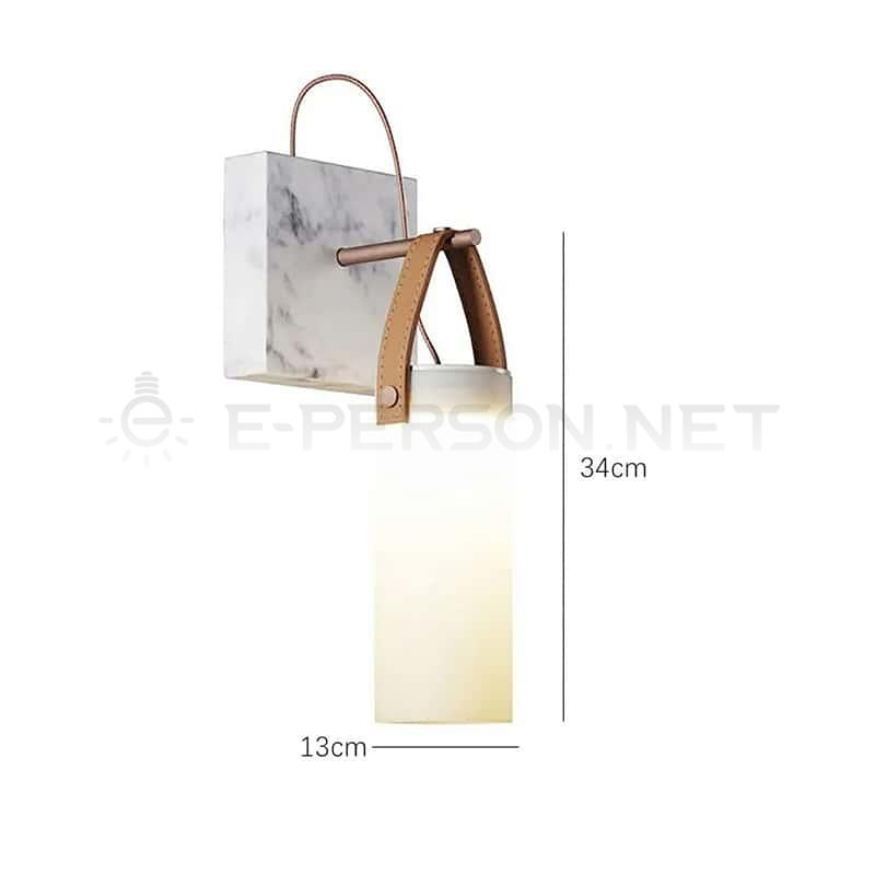 This marble + leather + metal wall lamp blends luxury materials with innovative design. The square marble base provides a stable and elegant foundation, while the leather strap detail introduces a warm, natural touch. The cylindrical frosted diffuser delivers a soft, ambient glow, making it perfect for both decorative and functional purposes.